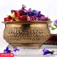 در بین انواع ظروف پذیرایی، ظروف فلزی و برنجی جلوه خاص تری به دکوراسیون میبخشند. شکلات خوری برنجی گرد ریما کد R-98707، از جنس فلز برنج و با بالاترین کیفیت ساخته شده است. از طرفی به ظریف ترین شکل ممکن به روش سیاه قلم، قلم کاری شده است. رعایت جزئیات در ساخت این محصول، جلوه خاصی به این شکلات خوری میبخشد و آن را به محصولی آنتیک و قیمتی تبدیل میکند.